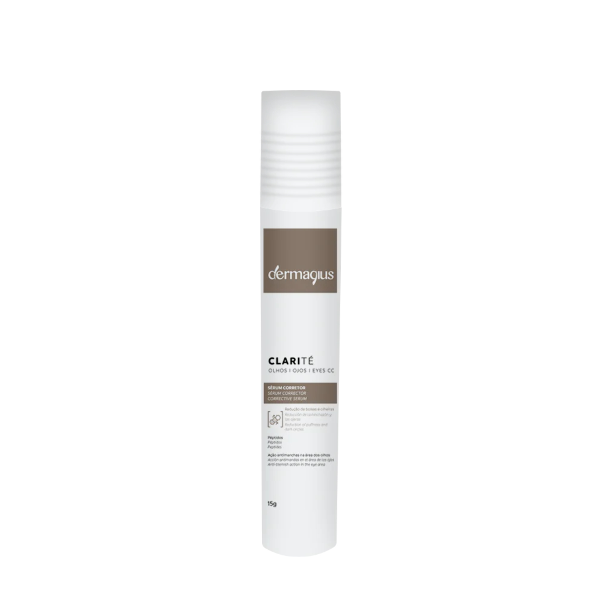 Dermagius - Clarité Sérum Olhos CC Clarité Olhos é um cuidado corretor, com aplicador, indicado para a zona do contorno ocular, para redução de manchas e olheiras. Com uma combinação de cinco ativos poderosos, este dermocosmético é altamente eficaz no clareamento de olheiras escuras, sejam elas vasculares ou melânicas, e na redução de bolsas e edemas. Além disso, proporciona hidratação profunda, luminosidade e combate os sinais de envelhecimento, como rugas e rídulas, devolvendo ao olhar uma aparência rejuvenescida e descansada.