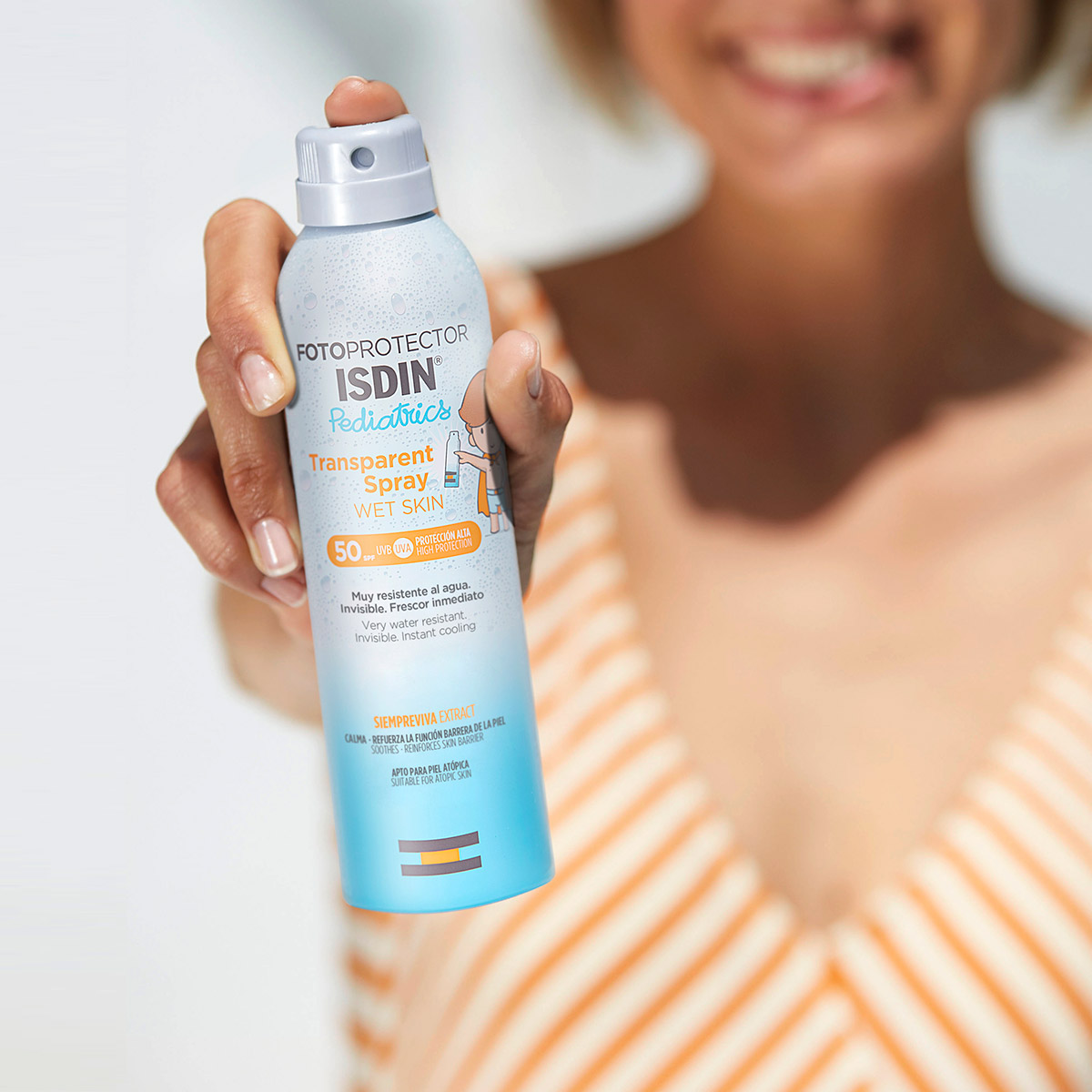 ISDIN - Fotoprotector Pediatrics Transparent Wet Skin SPF50+, proteção diária da pele frágil da criança. Formato recomendável para crianças que passam muito tempo dentro de água, uma vez que se pode aplicar tanto sobre a pele molhada como seca