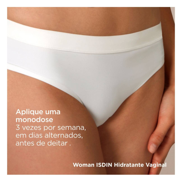 Aplicar uma monodose de Isdin - Woman Hidratante Vaginal, 3 vezes por semana, em dias alternados, de preferência antes de dormir, na zona íntima.