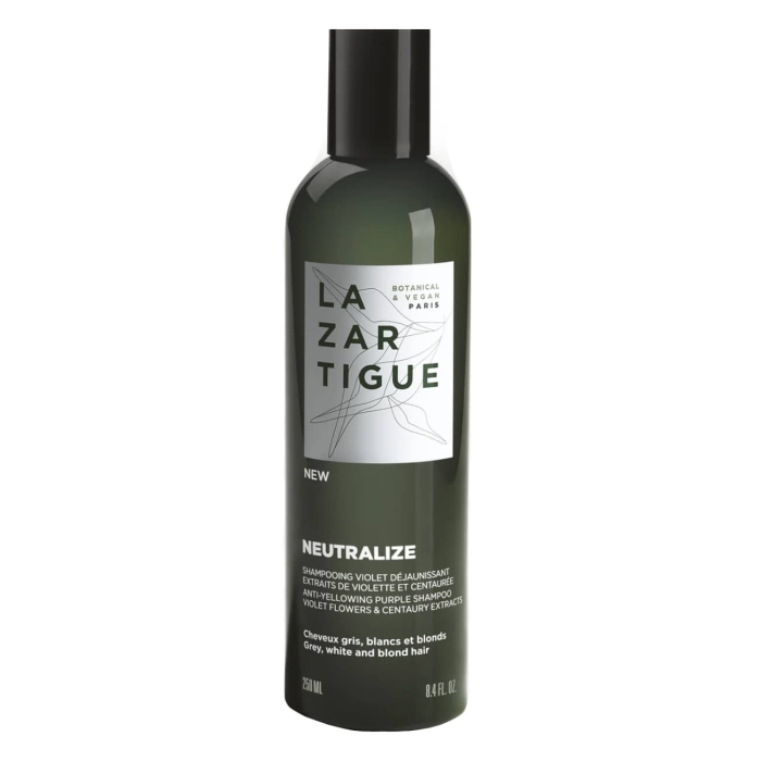 Lazartigue - Neutralize Champô Roxo é um champô que neutraliza o tom amarelo para manter os cabelos brancos ou loiros platinados com a sua cor e brilho originais. Lava suavemente sem agredir o cabelo, neutraliza o tom amarelado e previne a oxidação do cabelo. Ideal para cabelos brancos ou loiros platinados.