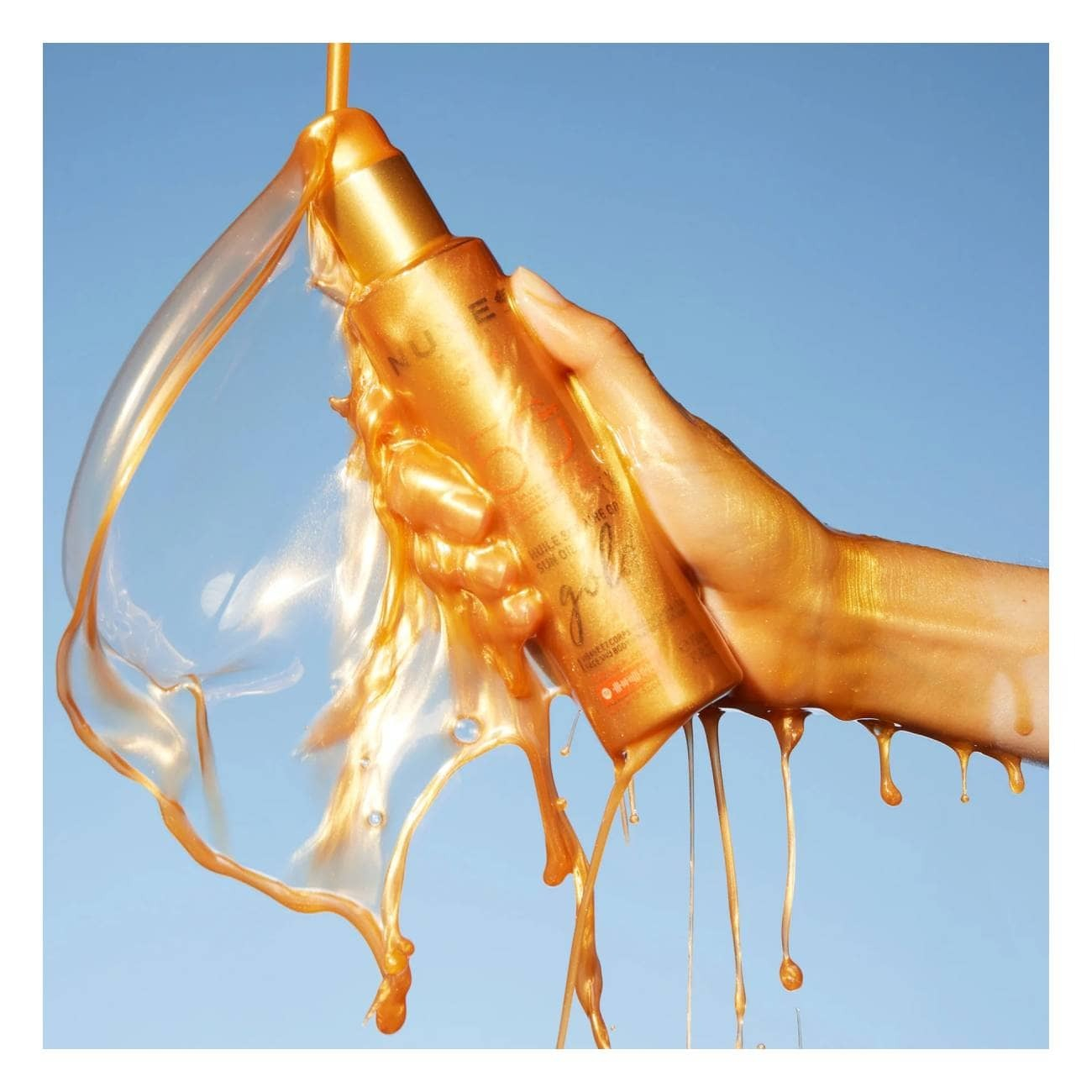 Nuxe - Sun Óleo Solar Gold Rosto e Corpo SPF50 tem uma textura leve com nácares naturais, de rápida absorção, com uma fórmula enriquecida e nutritiva. Possui na sua formulação: