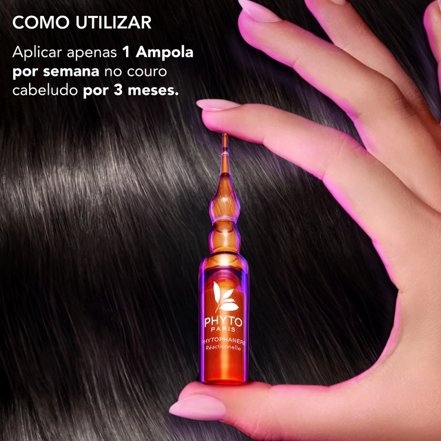 Phyto - Phytophanere Queda de Cabelo Reacional Ampolas é um cuidado que retarda a queda de cabelo intensa desde as primeiras 4 aplicações, fortalece o cabelo desde a raiz e revela um penteado mais forte, mais denso e visivelmente mais volumoso. Atua na queda de cabelo súbita e intensa com duração inferior a 3 meses, associada ao stress, à pós-gravidez ou às mudanças de estação.